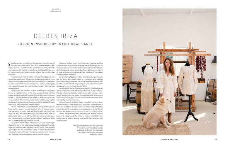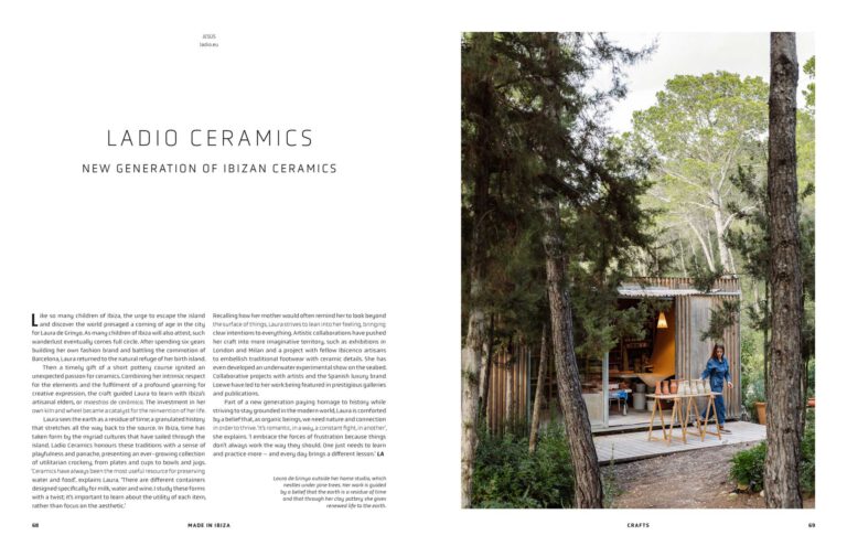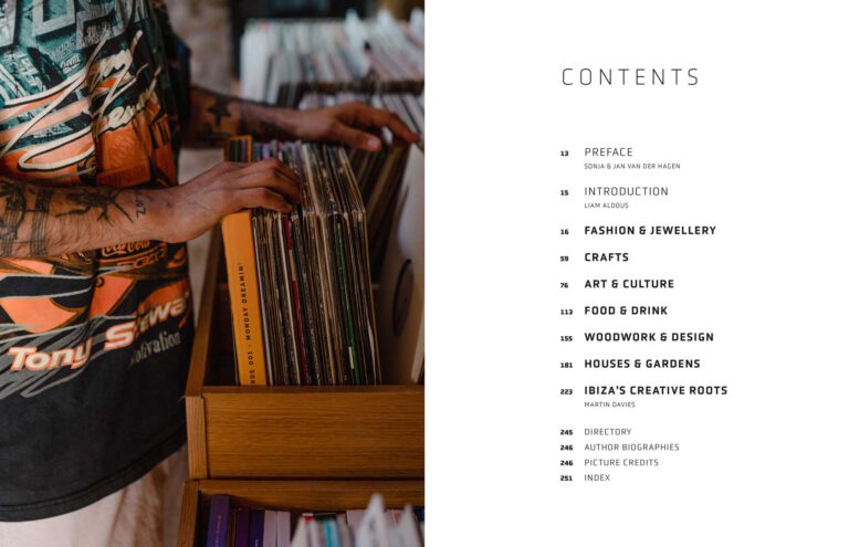 Begleitet wird die visuelle Reise von Essays zur kulturellen Geschichte Ibizas: von den Phöniziern über Hippies bis hin zur heutigen internationalen Kunstszene. Made in Ibiza ist eine Hommage an die kreative Vielfalt der „Weißen Insel“ – zwischen Handwerk, Tradition und zeitgenössischem Design.