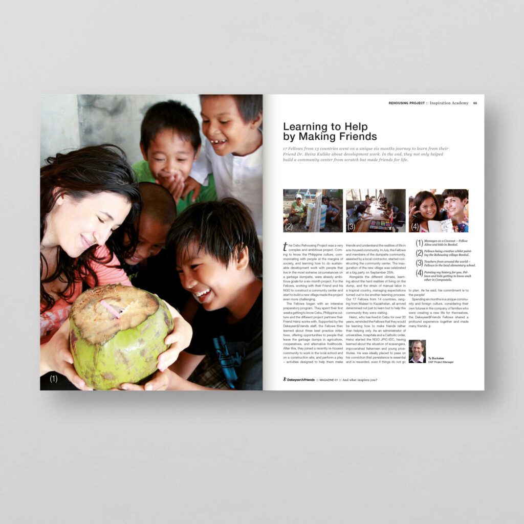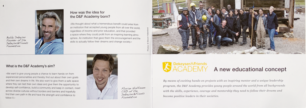 Die Dekeyser&Friends Foundation ist eine internationale Stiftung, die soziale Projekte und nachhaltige Entwicklung weltweit fördert. Ihr Ziel ist es, Menschen zu befähigen, ihr Umfeld aktiv zu gestalten und positive Veränderungen in ihren Communities anzustoßen.